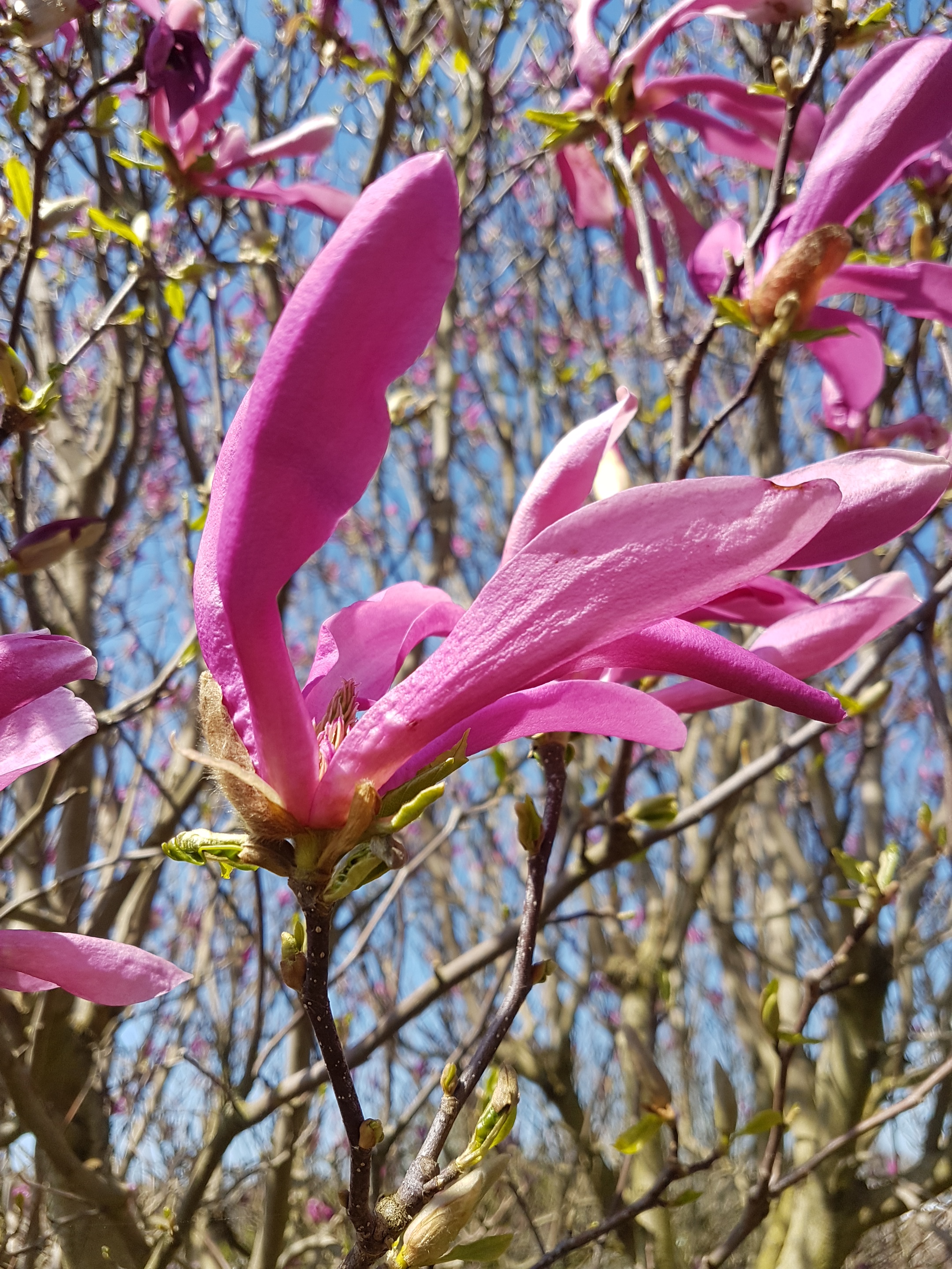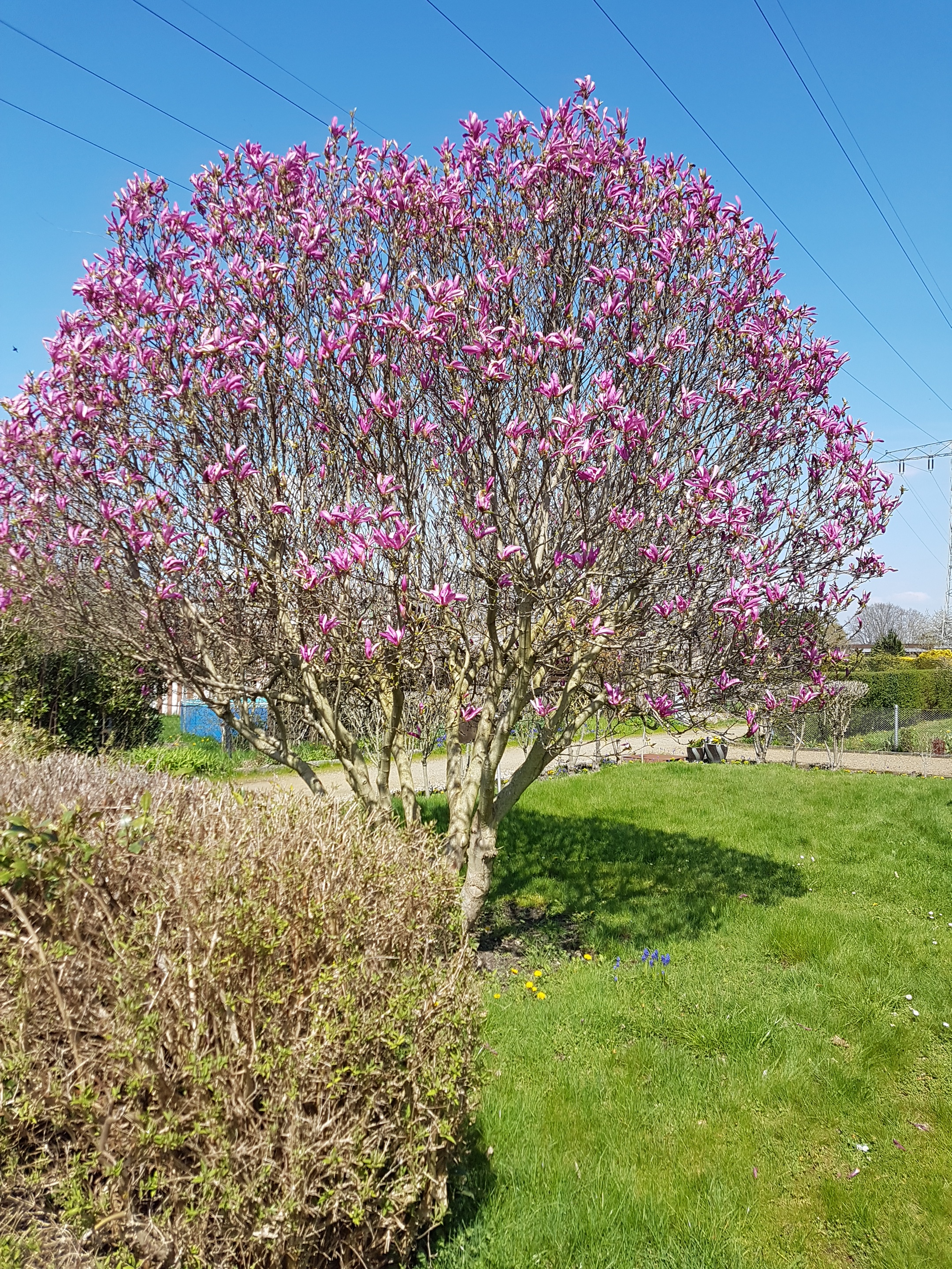 Auch wenn seit Montag gefühlt der Winter wieder zurück ist, war es doch am Wochenende angenehm warm bei traumhaften Frühlingswetter. Überall in der Sparte hörte man das Summen des Rasenmähers und so einige Schmetterlinge drehten ihre Runden. Auch die Saison der Frühlingsblüher ist noch nicht vorbei und so konnte man sich vielerorts an Tulpen, Osterglocken, Traubenhyazinthen, Gänseblümchen, Schlüsselblumen und vielen mehr erfreuen. Auch die zahlreichen Magnolienbäume stehen jetzt in voller Blüte und verzaubern die Anlage.